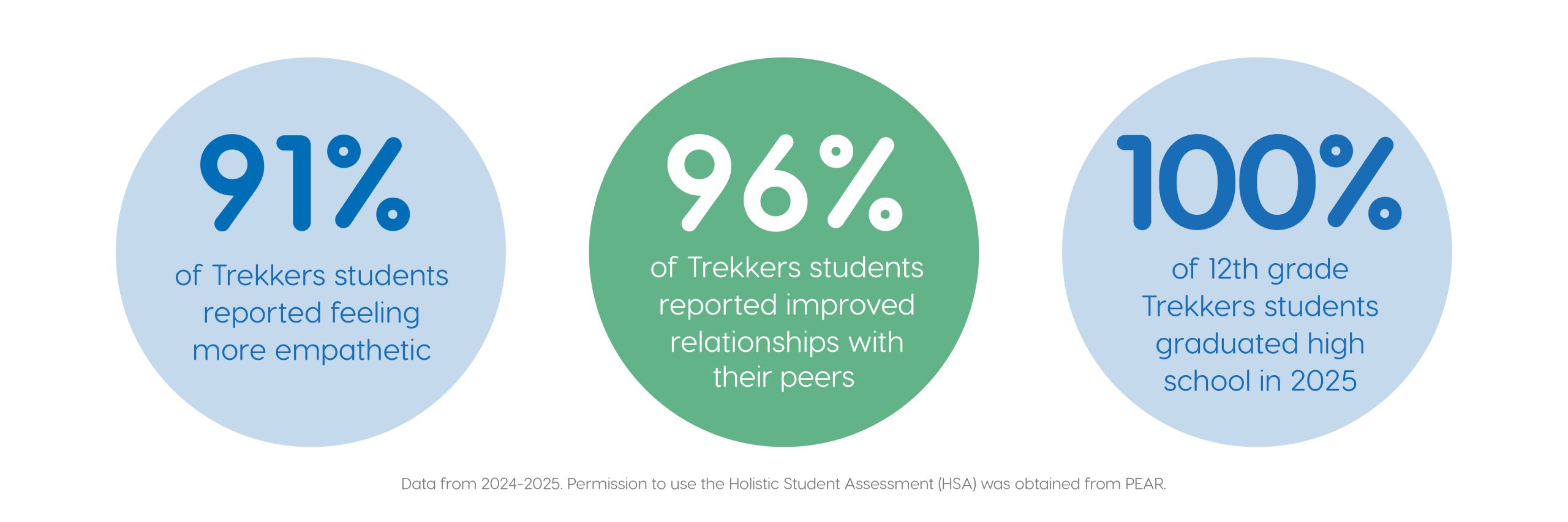 Our history spans over 30 years of programs that are proven to help students build resilience, create community, and develop aspirations for their future. Learn more about our history and with the success of our recent capital campaign, our plans for the future of Trekkers.