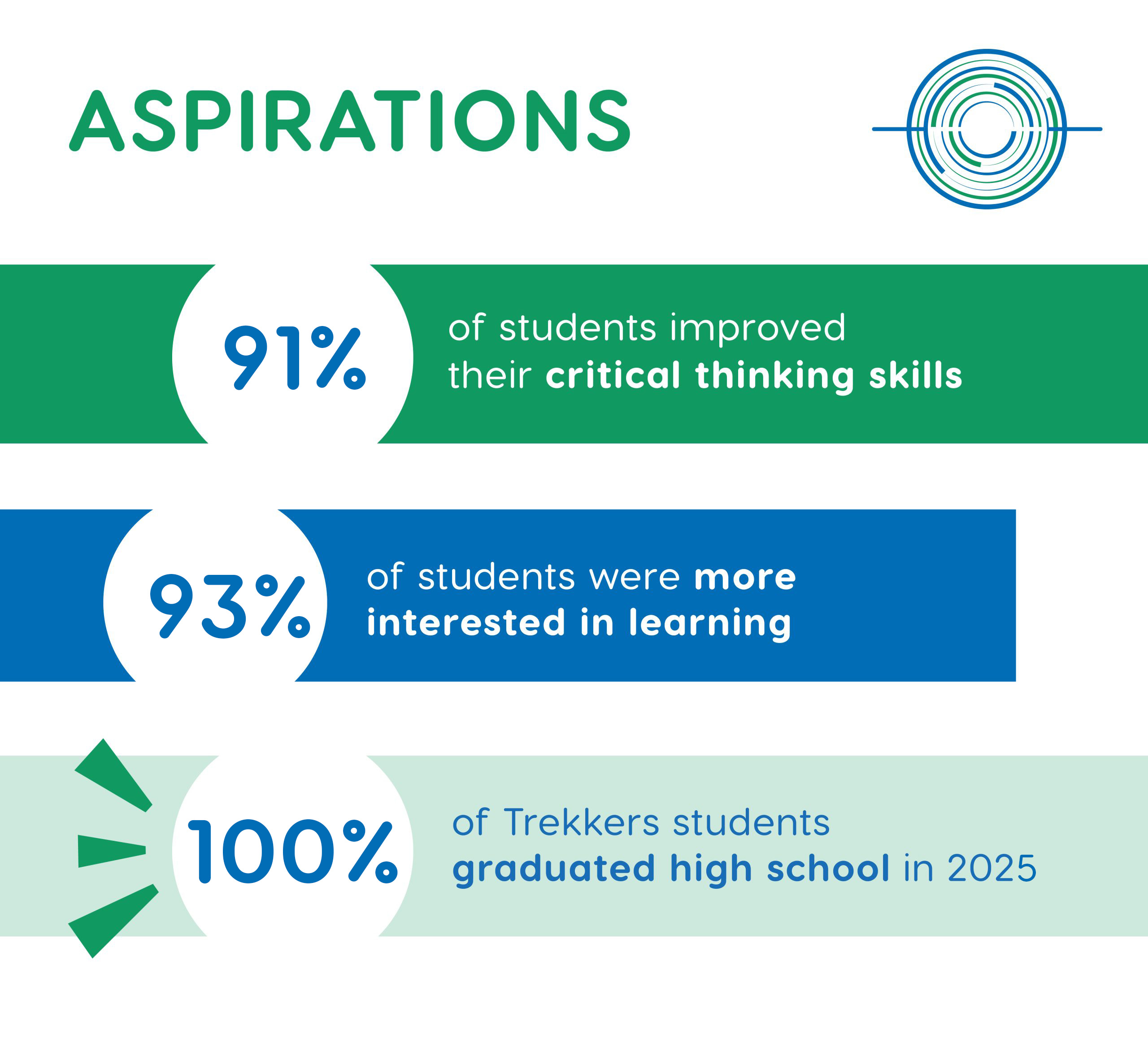 - 100% of 12th grade Trekkers students graduated high school