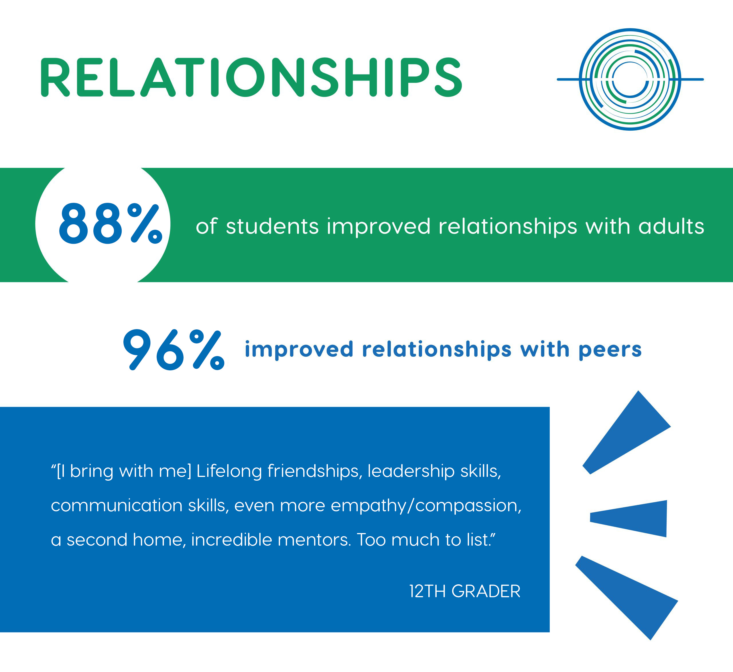 - 79% of students improved relationships with adults
